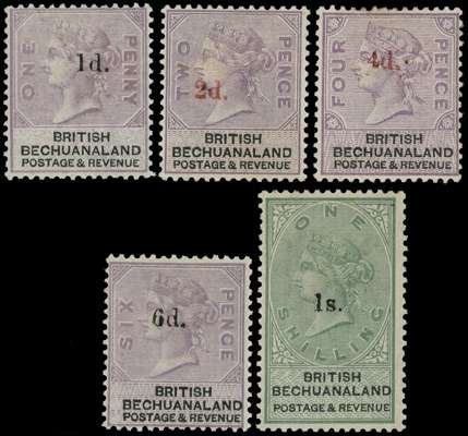 1888 1d on 1d to 1/- on 1/- unused without gum (1d, 4d), part o.g. (2d) or large part o.g. (6d, 1/-). SG 22-8, £908