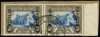Official. 1935-49 "Set 18" (= 1940 issue) 10s "Dull blue and sepia" (the lighter shade as defined by Hisey & Matheson p.101), SG type O3 opt with "OFFICIAL" at LEFT, horizontal pair from right of sheet, used on piece with neat part PRETORIA cds, dated "4 II 49". Folded central perfs, still very fine appearance. Ex Matheson. [Union Handbook O90]
