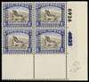Official. 1950-54 1s blackish brown and ultramarine, type O7 opt, lower right corner block of 4 with Cylinder numbers '6926' and '6935', brilliant o.g. (lower pair unmounted). Attractive and very scarce in this positional form.