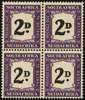 Postage Due. 1948-49 2d black and violet, unhyphenated "SUIDAFRIKA", block of four, the upper pair variety Thick (doubled) "2D" (R16/5-6), unmounted o.g. Scarce.