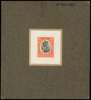 1929 (28 May) 4d stamp-sized composite essay by DLR, comprising a printed portrait of the King (facing to right) in black with handpainted frame in orange and Chinese white on very highly surfaced paper, inset on thick card (100 x 111mm), dated at top with DLR h/s on reverse. A beautiful and unique essay, and highly desirable.