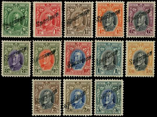 Southern Rhodesia 1931-37 Field Marshall set of 13 to 5s with Specimen handstamp