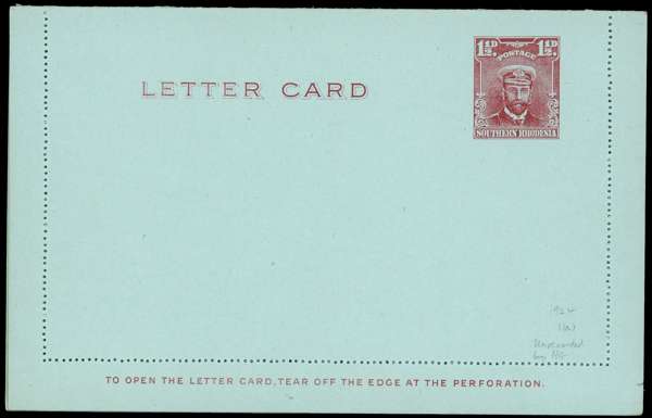Postal Stationery. 1924 “Admiral” 1½d carmine/blue letter card, unused. Very fine and rare.