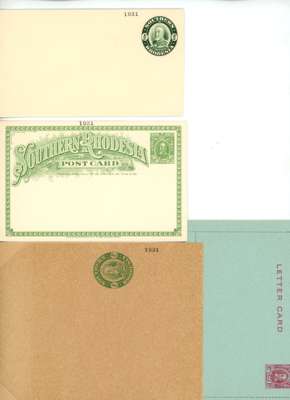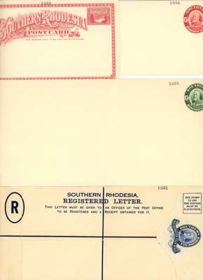 Postal Stationery. 1931 “Field Marshall” range comprising ½d wrapper, ½d and 1½d post cards, ½d and 1d envelopes (136 x 80mm), ½d envelope (230 x 104mm, folded), 1d letter card, and 4d registration envelope (size H2), all from the UPU reference collection with “1931” receiving h/s at top, fine unused. A rare group, with only six of each possible. (8)