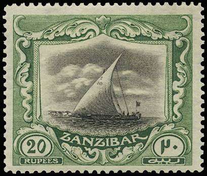 ZANZIBAR SG 296 1921-29 20r BLACK AND GREEN SCRIPT WMK LPOG