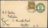 Postal Stationery. 1920 (25 JAN) ½d green “Admiral” envelope (137 x 79mm - without embossing under flap), used to London and uprated with 1913-19 1½d “Admiral”, perf 14, tied by MONGU-LEALUI / NTH RHODESIA cds, with Livingston (13 FEB) transit backstamp. A rare usage. Ex Napier (Grosvenor 27 Apr 2017, lot 2632).