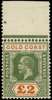 1921-24 Wmk Script CA £2 green and orange (Die I), upper marginal with selvedge re-attached by hinge, large part o.g. fine. SG 102