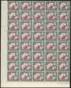 1950 50c purple and black perf 13 x 12½ corner block of forty (R3-10/1-5) unmounted o.g. with off-white gum. Shows dot removed on all except R6/1, 7/2/ 7/4 and 9/1, thus giving four pairs ‘with and without dot’. R5/1 shows ‘crescent below stern’ variety. SG 144ea, eb, £3120
