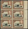 1942-9 1/- black and brown perf 13 x 11¾ positional block of six showing R5/10 mountain retouch, brownish gum, unmounted o.g. SG 145ad, £4500