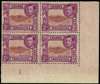 1938 2/-lake-brown and bright purple perf 13¼ lower right corner block of four, Frame Plate 1. Hinged on the selvedge and (very lightly) on the upper two stamps. Slight wrinkling, streaky brown gum, a rare multiple. SG 146, £720