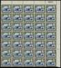 1950-4 3/- deep violet-blue and black perf 12½ corner block of thirty-five, unmounted o.g. Shows a black inking flaw starting near the bottom of R4/8 and showing at top and base of R5/8; also large sky retouch on R3/9, 5/10 retouching below medallion and 6/7 ‘smoke’ on mountain. Nice multiple. SG 147ac, £1750