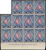 1944 10/- reddish purple and blue perf 13¼ x 13¾ imprint block of eleven (regular block of 4 x 2 with three ‘extra’ stamps on top), unmounted o.g., off-white gum. SG 149b, £715