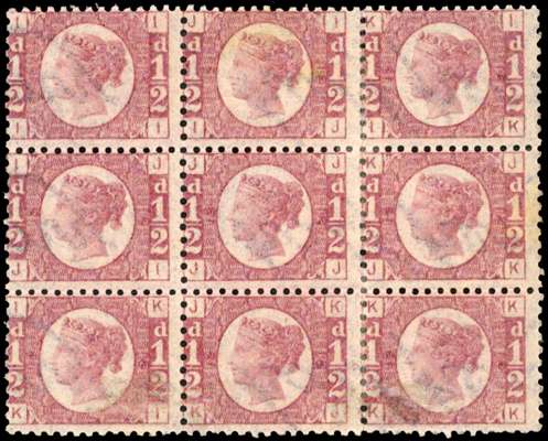 1870 ½d rose-red block of nine, wmk. inverted...