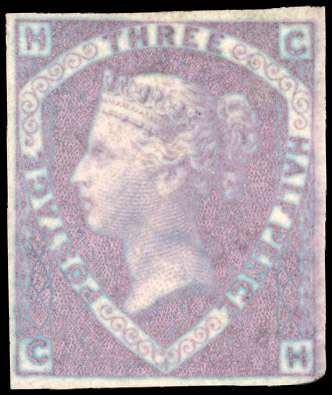 1860 1½d rosy mauve Plate 1 (CH), imperforate imprimatur, unused, bearing a strong ivory head on reverse, very fine and rare. SG 53a,var