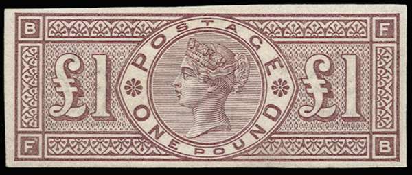 1884 £1 Brown-lilac (Wmk. Three Crowns). Superb unused o.g. imperforate imprimatur lettered FB. Very rare. SG 185var