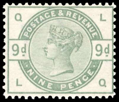 1883/84 ‘Lilac and green’ 9d dull green (LQ), fine unmounted original gum