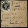 1888 1/2d "Jubilee" Die proof. Very fine striking book piece for plates 9, 10, 11 & 12 bearing a die proof in black on white glazed card, cut to stamp size and mounted on buff card (54 x 47mm) endorsed "June 13, 240 Leads/ June 20, 240 Leads/ June 26, 240 Leads/ July 20, 240 Leads". Unique. Wiseman Ref. FAc-6. Ex. DLR Archive & "Aureum". SG 197var