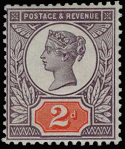 1899 2d "Jubilee" Colour Trial. Very fine and fresh unused example printed on gummed, unwatermarked paper with purple head plate and orange duty plate. Scarce. Ex "Aureum". SG 200var