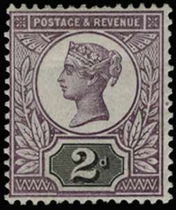 1899 2d "Jubilee" Colour Trial. Very fine and fresh unused example printed on gummed, unwatermarked paper with purple head plate and black duty plate. Scarce. Ex "Aureum". SG 200var