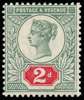 1886 2d Green & carmine "Jubilee" value tablet trial. Very fine example with value tablet printed in solid colour, on gummed Crown watermarked paper. Extremely rare, only a few examples survive in private hands. See Wiseman Vol.2 where this example is illustrated on the front cover. Ex. Aureum SG 200var