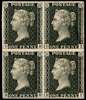 1872 1d Black South Kensington Exhibition Proof Pl.27. Very fine unused imperforate block of four printed in black, lettered GH-HI. Scarce; only one sheet of 240 printed. Spec. DP36. SG DP36
