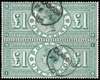 1890 £1 green vertical pair (lettered HB-IB), cancelled by crisp Glasgow CDS's for 'FE 4 1896', good colour, scarce multiple,