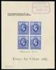 1913 7d Eve's Wreath design colour essays. Very fine ungummed imperforate block of four essays (Fig 30a) in gloriosa blue on white unwatermarked card mounted on thick card (88 x 113mm). Showing "CONFIDENTIAL" and "Essays for Colour only.", ink manuscript "Gloriosa Blue" below the stamps and "E202" at lower left, purple "STAMPING DEPARTMENT/3 JAN. 1913." handstamp at top right. Most attractive and rare. SG 387var