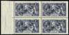 1913 10s Indigo-blue. Superb unmounted o.g. well centred left hand marginal block of four printed by Waterlow. Very scarce so fine. Spec. N69(1). SG 402
