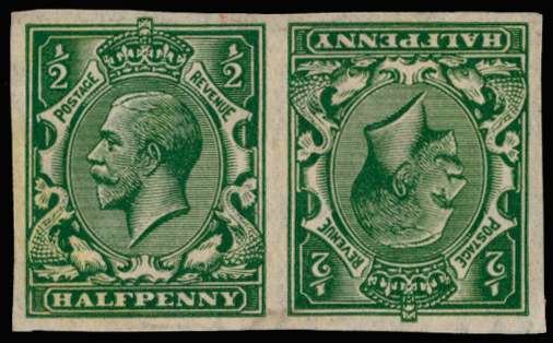 1924 ½d Green (Wmk. Block Cypher). A very fine unused part o.g. imperforate tête-bêche imprimatur pair from the Post Office booklet registration sheet. SG 418var