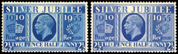 1935 2½d Prussian blue shade, a trifling gum toning still fresh facially, good colour, offered with normal for comparison, large part o.g. SG 456a
