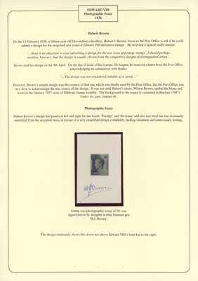 1936 KEVIII Bromide (47x72mm) of H. J. Brown's original sketch for the 3d value and signed below by Brown in blue ink. Some toning on reverse but an attractive essay nonetheless. Spec. Vol. II P. 221