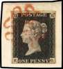 1840 1d black, Plate 2 (EG) four margins, tied to small paper piece by neat red MC SG 2