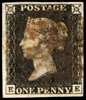 1840 1d black, Plate 4 (EE) four margins, cancelled red-brown MC SG2