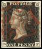 1840 1d black plate 5 (NF) four margins and neat central MC in red