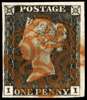 1840 1d Black plate 6 (II) neatly cancelled by red MC SG 2/Spec. AS41