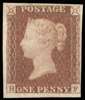 1841 1d Red brown Pl.75 Imprimatur. Very fine four margin example lettered HF, one of only 22 possible examples from this plate. 2004 RPS Certificate. Ex The Royal Philatelic Collection SG 8var