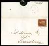 1841 1d Red brown Pl.15. Very fine used four margin example lettered JH, neatly tied to cover by a fine strike of the distinctive Welshpool "solid centre" MC. Backstamped at Welshpool and Shrewsbury for SP.15.1841. Scarce, Rockoff & Jackson record only 19 other dated covers. Spec. BS4taj. Cat, £3000