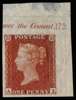 1841 1d Red brown Pl.173. (Alphabet II). Superb unused top right hand corner marginal imperforate imprimatur lettered AL, showing part sheet inscription and plate number "173". Rare. Ex. Colonel Bates (1934) & "Verus".