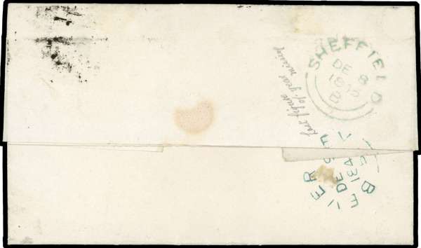 1845 (8 Dec) entire letter to Beverley franked with 1d red (slightly cut-into at right) cancelled by black Maltese Cross, contrary to regulations, the obverse bearing Chapeltown undated circle, backstamped Sheffield dispatch and Beverley arrival (9.12). Fair