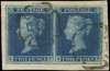 1841 2d Blue Pl.3. Very fine used four margin horizontal pair lettered EF-EG, neatly tied to a small piece and cancelled by crisply struck distinctive York MC's. A magnificent multiple of this very rare cancellation. Spec. ES11ui. 2013 Mike Jackson Cert.