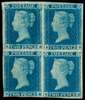1841 2d Blue Pl.4. Very fine and fresh unused o.g. four margin block of four (lower pair unmounted o.g.) lettered AA-BB. A magnificent block accompanied by a 1985 RPS Certificate, SG 14, £38,000 Ex. Shaida.