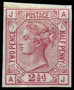 1875 2½d Rosy mauve Pl.1. Very fine and fresh unused o.g. imperforate imprimatur lettered AJ. Scarce, one of only 25 possible examples many of which are in intituitional collections. Ex. "Verus".