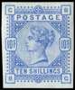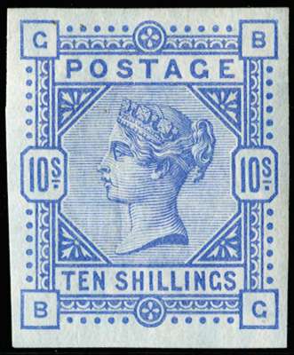 1884 10s Ultramarine Pl.3 (Blued paper). Very fine and fresh unused o.g. imperforate imprimatur lettered BG. Very rare one of only 24 possible examples many of which are in institutional collections. 1995 BPA Cert, SG 177var, £6,250.