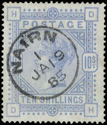 1884 10s Cobalt. Very fine used example lettered DH, neatly cancelled by a crisp Nairn thimble cds for JA.19.1885. Most attractive. SG 182, £8,250