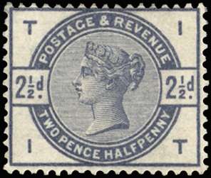 1883 2½d Colour trial. Very fine unused o.g. perforated example on crown watermarked paper, printed in blue grey. Very scarce, no more than two or three examples of each colour exist in private hands.