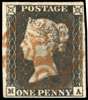 1840 1d grey-black, plate 1A (MA), four margins, cancelled by red MC