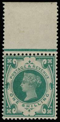 1900 1s "Jubilee" Colour Trial. Very fine top marginal example printed in emerald on crown watermarked, gummed paper. Produced as proposed colour trials for the 1900 1s bicolour issue. Scarce. Ex. "Aureum".