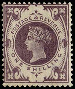GB SG211var 1900 1s "Jubilee" colour trial in dull purple.