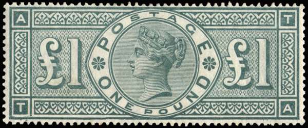 1892 £1 Green. Very fine and fresh unmounted o.g. example lettered TA with broken frame variety, light toning on a few perfs, otherwise fine. Spec. K17a, £10,000