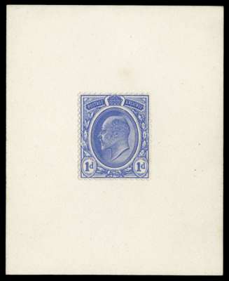 1902 1d "Transvaal" essay. Superb unused type 2 example printed by DLR in blue, perforated 14 and mounted on card. Superb quality and very rare. See Spec. Vol.2 pg. 15.